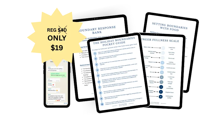 Bonus Holiday Section: Gentle strategies to help you stay calm, eat with ease, and enjoy the season without guilt or food drama.